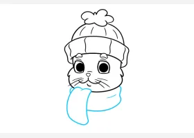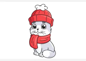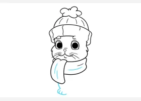 关于动物、小猫的简笔画,戴帽子和穿衣服的猫简笔画。