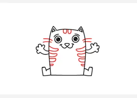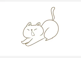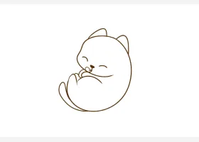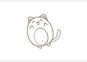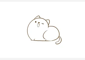 关于动物、小猫的简笔画,可爱小肥猫简笔画画法步骤。