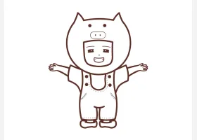 关于人物、小男孩的简笔画,可爱的猪猪男孩简笔画教程。