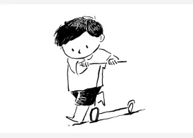 关于人物、小男孩的简笔画,小男孩和滑板车简笔画图片。