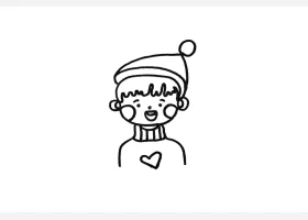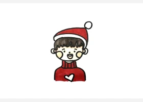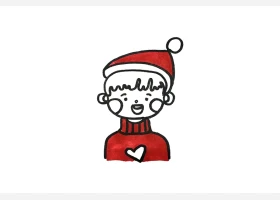 关于人物、小男孩的简笔画,画戴圣诞帽的小男孩简笔画教程。