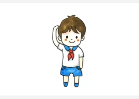 关于人物、少先队员的简笔画,小男孩少先队员怎么画。