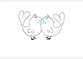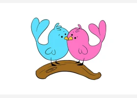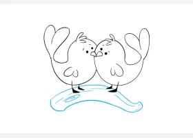 关于动物、爱情鸟的简笔画,可爱的一对爱情鸟简笔画步骤。