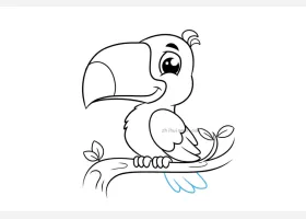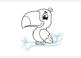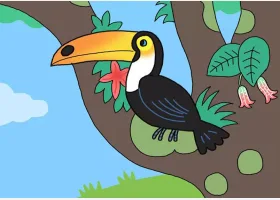 关于动物、巨嘴鸟的简笔画,漂亮的巨嘴鸟简笔画画法详解。