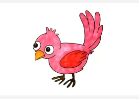 关于动物、小红鸟的简笔画,呆萌可爱的小红鸟简笔画画法。
