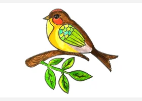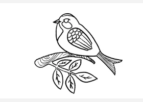 关于小鸟、小鸟怎么画的简笔画,一只树枝上的小鸟简笔画画法。