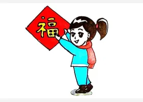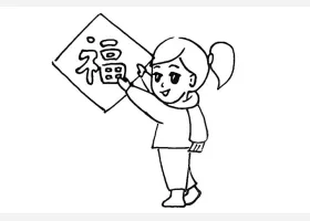 关于节日、小女孩的简笔画,贴福字的小女孩简笔画教程。