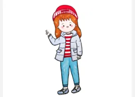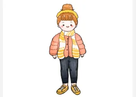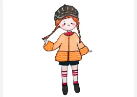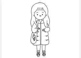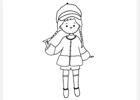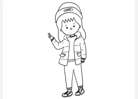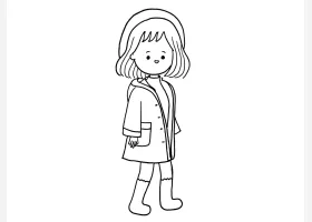 关于人物、小女孩的简笔画,冬日少女穿搭简笔画图片。