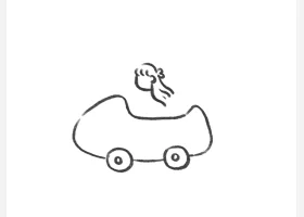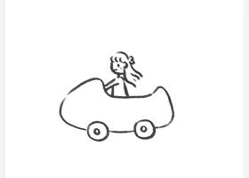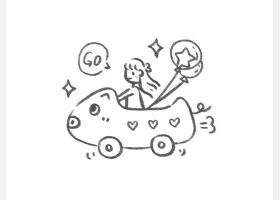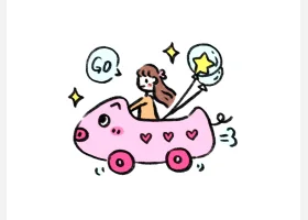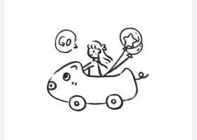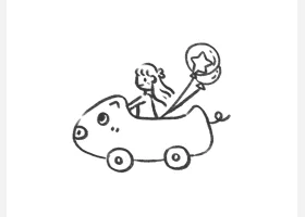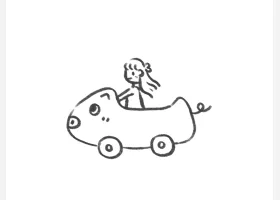 关于交通工具、小汽车的简笔画,小开猪猪汽车的小女孩简笔画画法步骤。