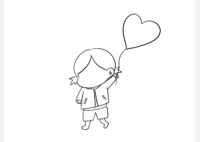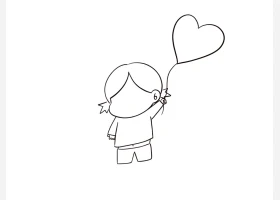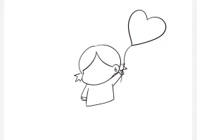关于人物、小女孩的简笔画,牵着爱心气球的小女孩简笔画画法步骤。