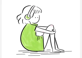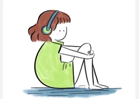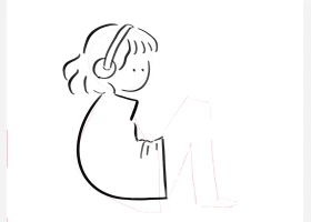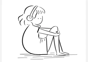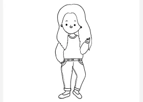 关于人物、小女孩的简笔画,安静的戴耳机小女孩简笔画画法。