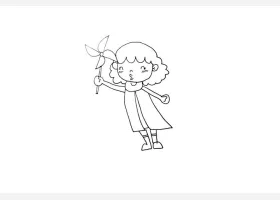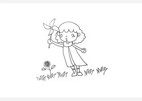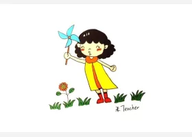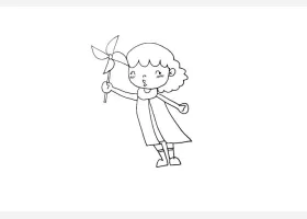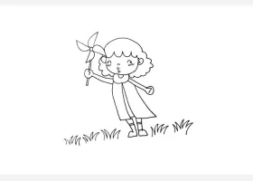 关于人物、小女孩的简笔画,玩风车的小女孩简笔画教程。