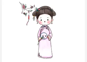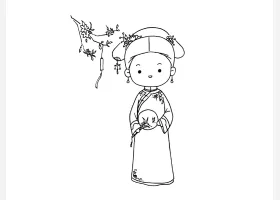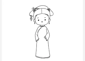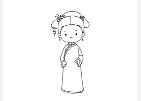 关于人物、小女孩的简笔画,穿清代服装的小姑娘简笔画画法步骤。
