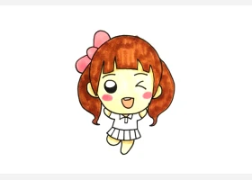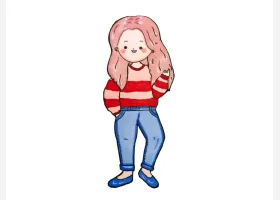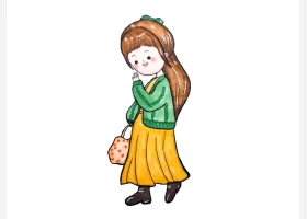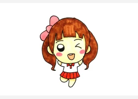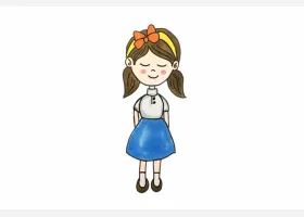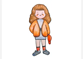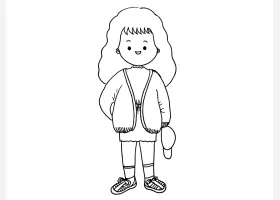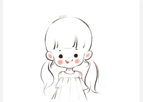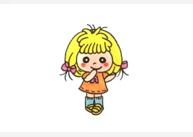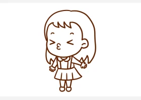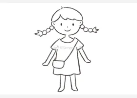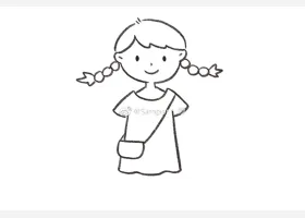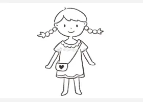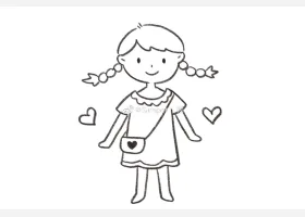 关于人物、小女孩的简笔画,俏皮可爱的小女孩简笔画步骤。