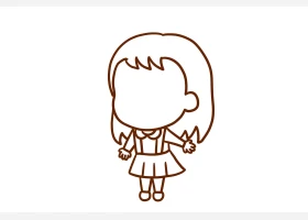 关于人物、小女孩的简笔画,呆萌可爱的小女孩简笔画步骤。