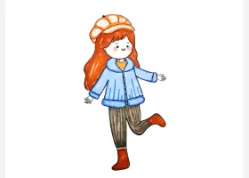 关于人物、小女孩的简笔画,冬天漂亮的小女孩简笔画画法步骤。