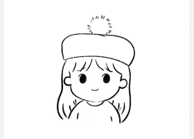 关于人物、小女孩的简笔画,戴圣诞帽的小女孩简笔画画法步骤。