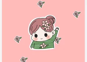 关于人物、小女孩的简笔画,头戴樱花的小女孩简笔画步骤。