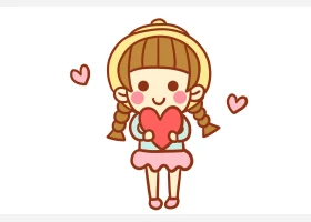 关于人物、小女孩的简笔画,拿着爱心的小女孩简笔画教程。