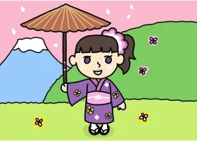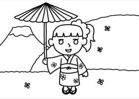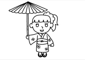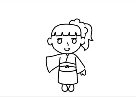 关于人物、小女孩的简笔画,穿和服的小女孩简笔画教程。