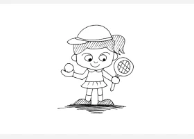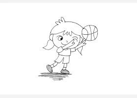 关于人物、小女孩的简笔画,一组打球的小女孩简笔画。