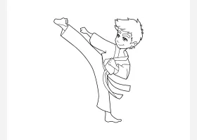 关于人物、空手道图片的简笔画,练空手道的男孩和女孩简笔画。