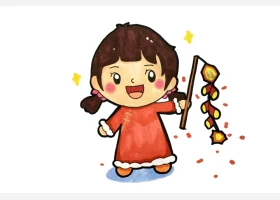 关于人物、小女孩放鞭炮的简笔画,春节小女孩放鞭炮简笔画。