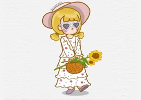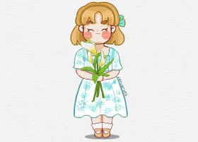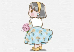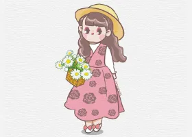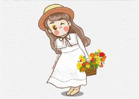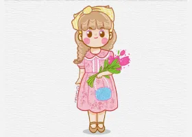 关于人物、小女孩的简笔画,花与少女,漂亮的小女孩简笔插画。