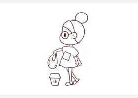 关于人物、小女孩的简笔画,小女孩下楼扔垃圾怎么画。
