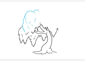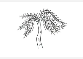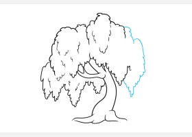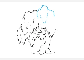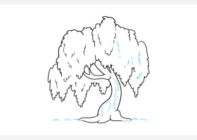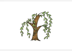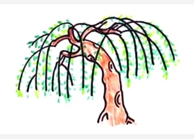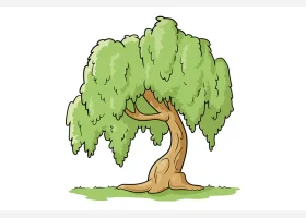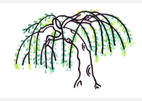 关于植物、柳树的简笔画,如何画茂盛的柳树简笔画步骤。