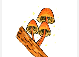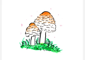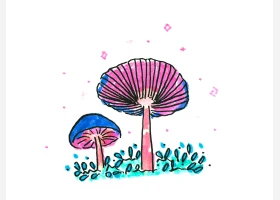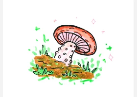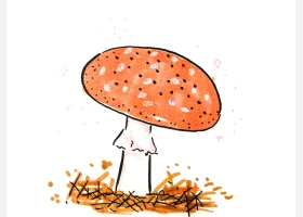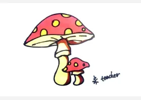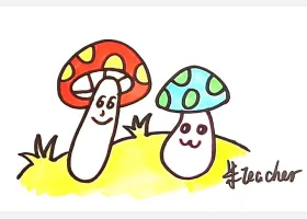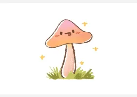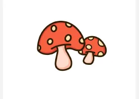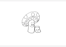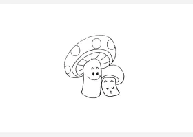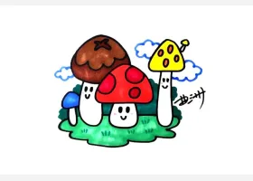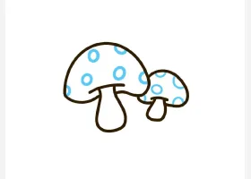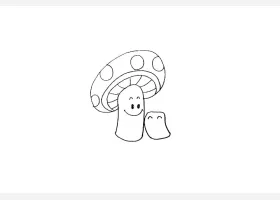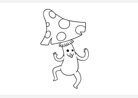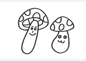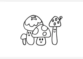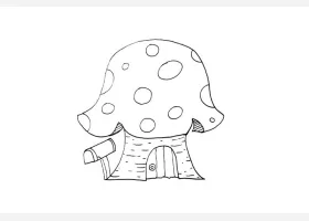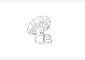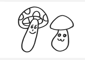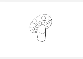 关于植物、蘑菇的简笔画,一朵卡通蘑菇简笔画步骤详解。