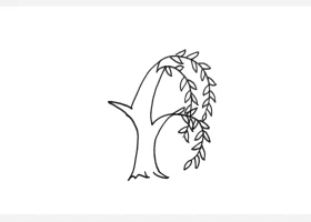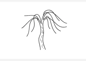 关于植物、柳树的简笔画,万条垂下绿丝绦简笔画教程。