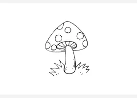 关于植物、蘑菇的简笔画,一朵简单的蘑菇简笔画画法。