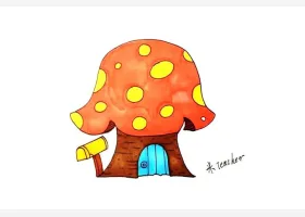 关于建筑、蘑菇房的简笔画,简单的蘑菇房简笔画画法步骤。