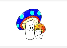关于植物、蘑菇的简笔画,漂亮的蘑菇简笔画画法步骤。